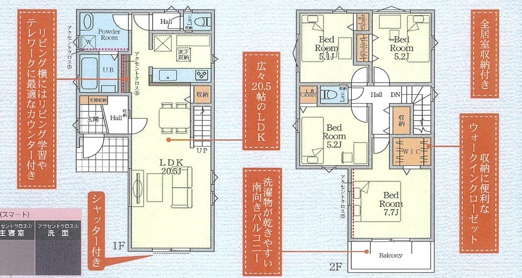 | 間取 | 4LDK (LDK20.5帖、洋室7.7帖、洋室5.2帖、洋室5.1帖、洋室5.1帖) | ||