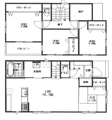 | 間取 | 4LDK (LDK16.1帖、和室4.5帖、洋室7.0帖、洋室5.0帖、洋室5.0帖) | ||