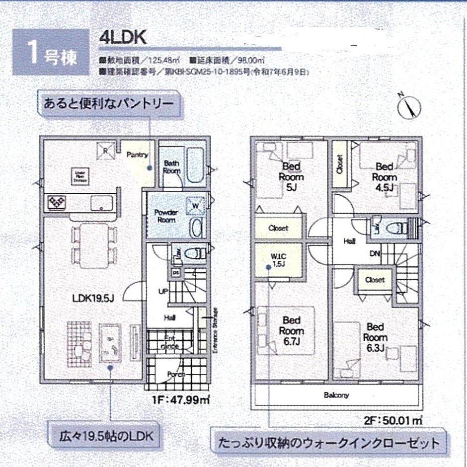| 間取 | 4LDK~4LDK (LDK19.5帖、洋室6.7帖、洋室6.3帖、洋室5帖、洋室4.5帖) | ||